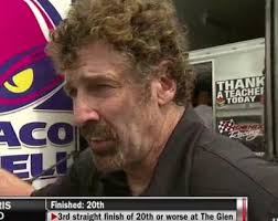 La traducción rápida va un poco así Minuto 1:09: Lo siento por el coche, pero no por Biffle, es el pequeño pedazo de mierda más grande que he visto, Necesita una buena paliza, trato de pegarme con puñetazos de niña para luego esconderse detrás de algunos tipos grandes... No se esconderá mucho tiempo de mi... no voy a chocarle porque los coches no tiene la culpa, pero pido a aquien pueda, me envían su dirección para ir a partirle la cara a su casa y ponerle un ojo morado... Con dos cojones!!! en directo televisión nacional y 20 millones de personas viéndolo. VIVA la NASCAR!!!!